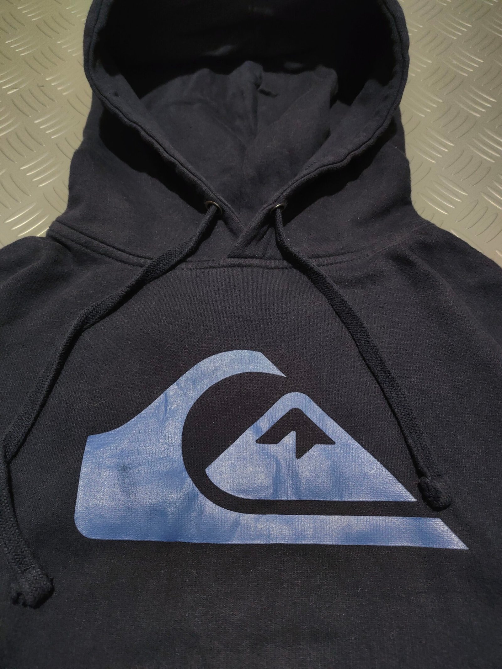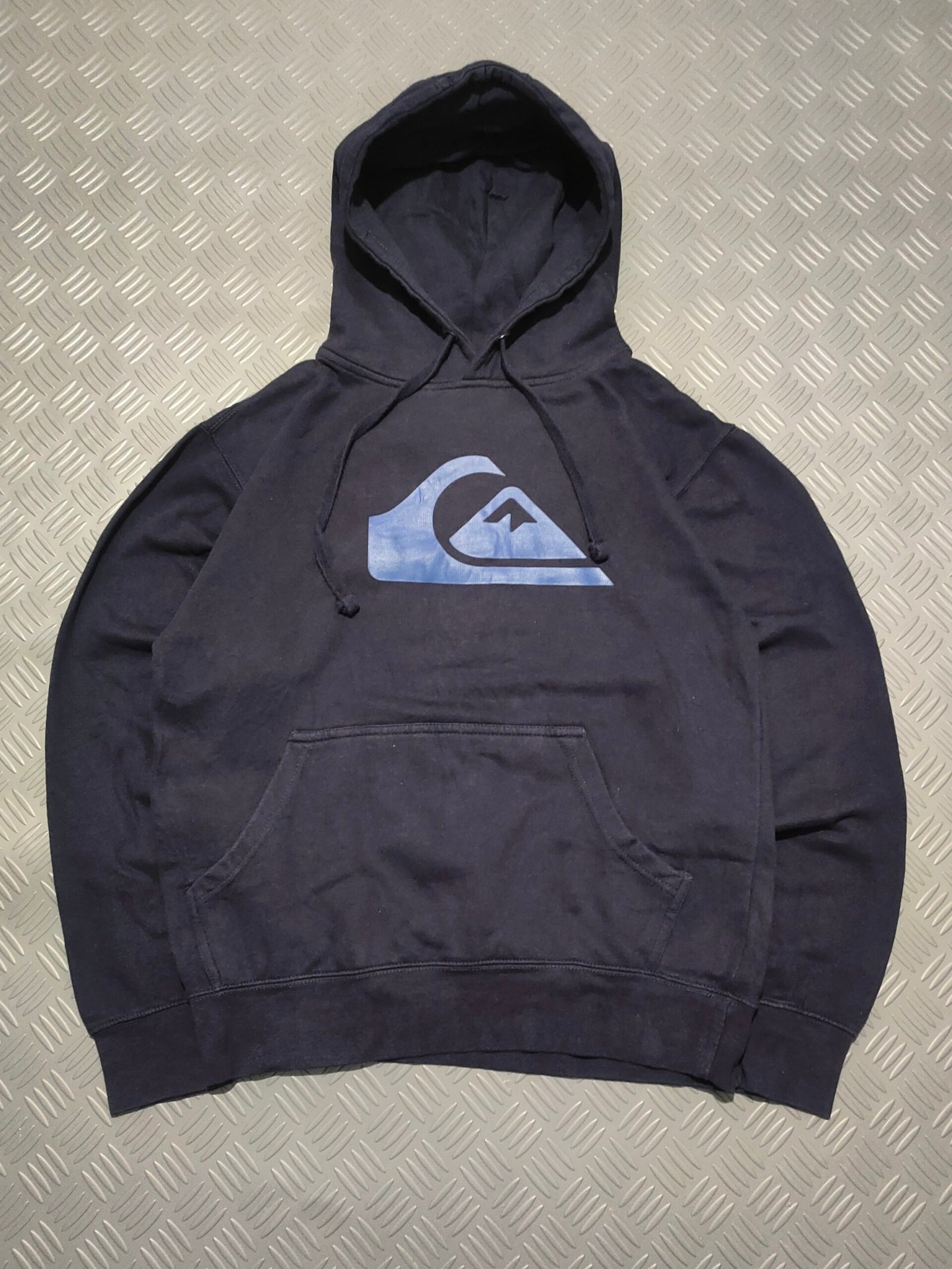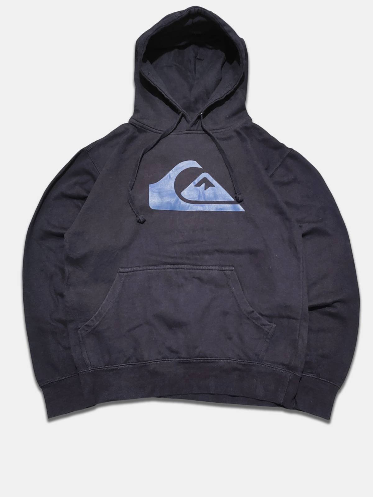 Vintage late 2000s hoodie sweatshirt ‘Quiksilver’ navy blue with big logo print in blue
