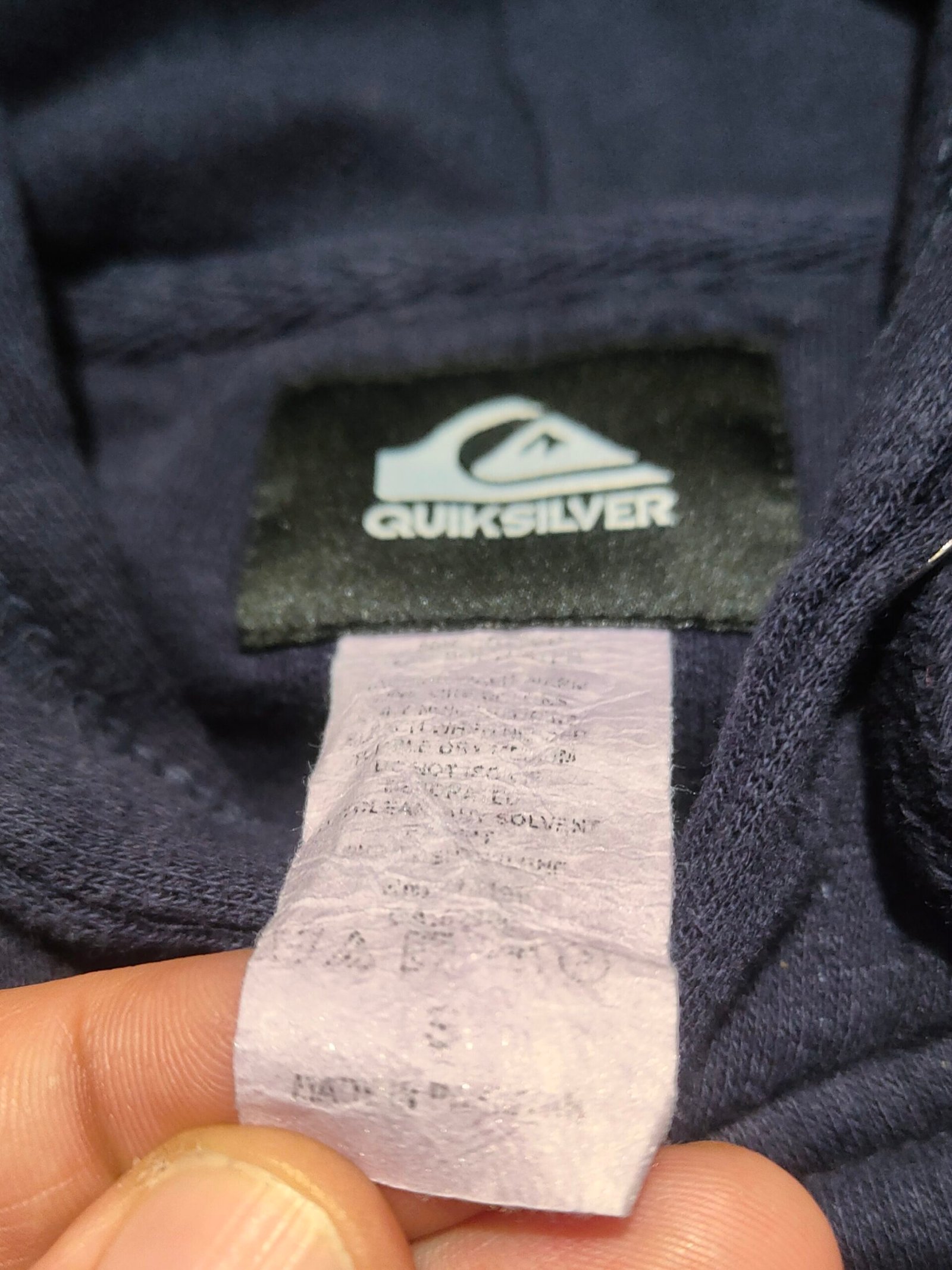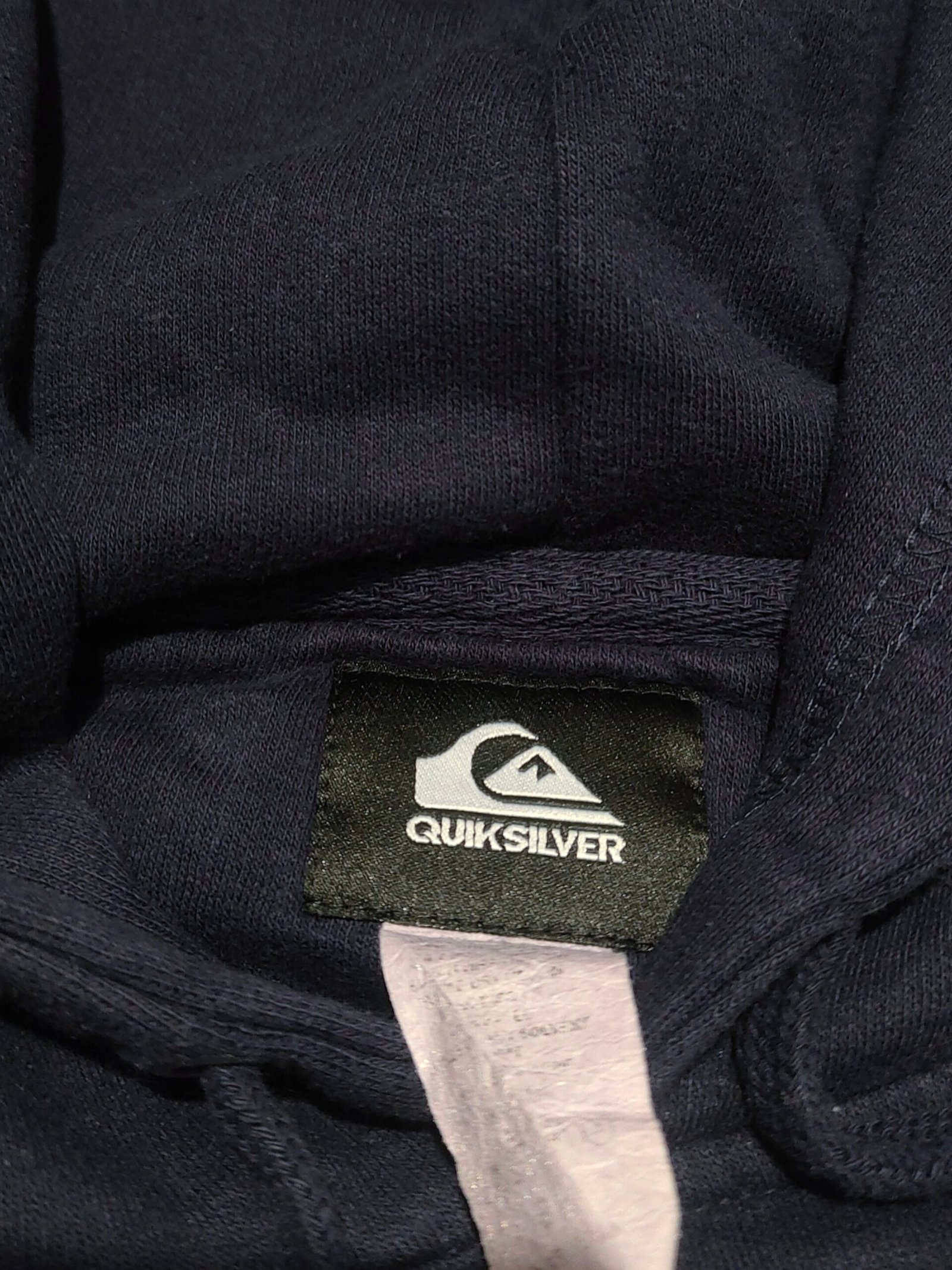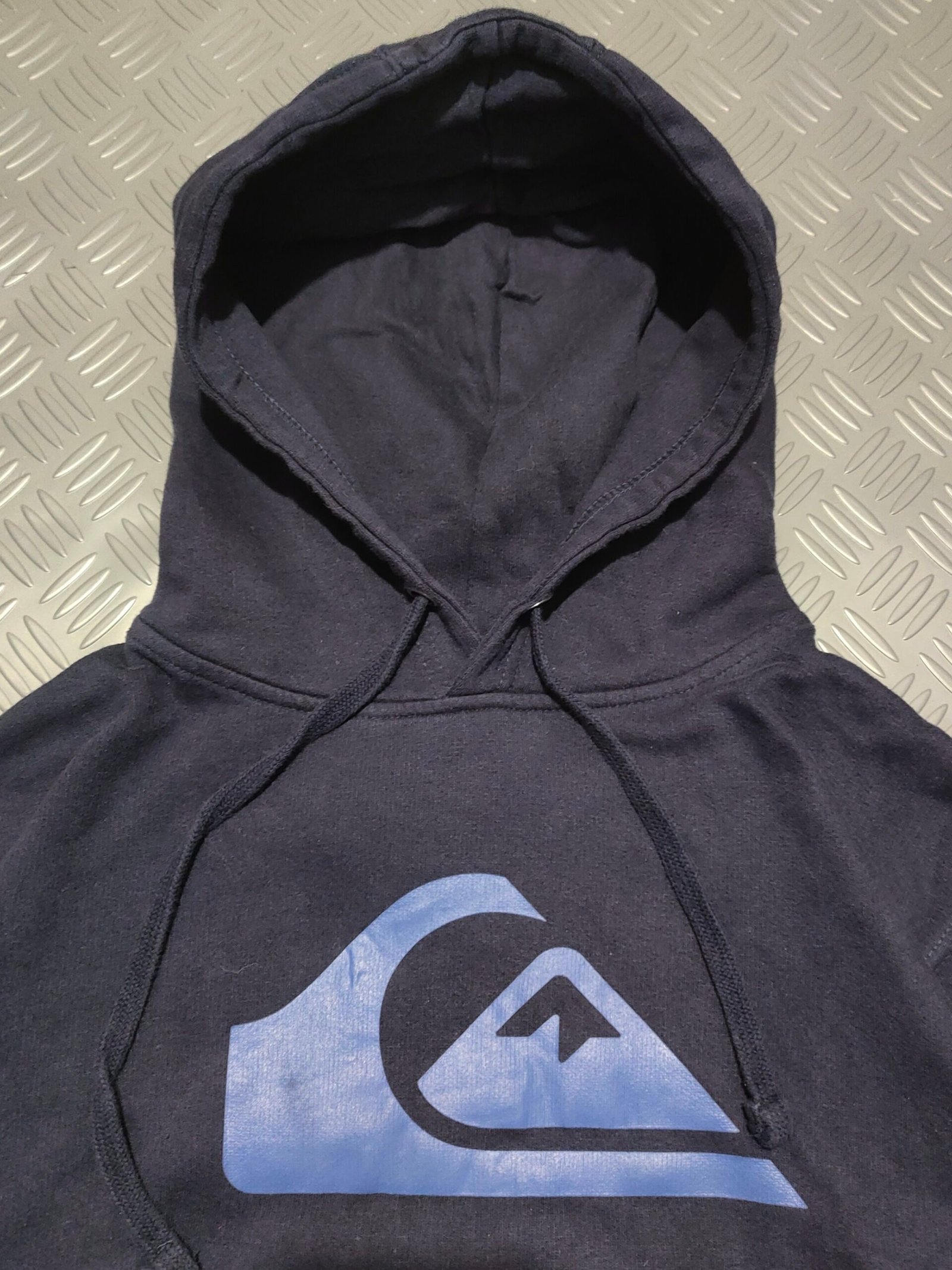 Vintage late 2000s hoodie sweatshirt ‘Quiksilver’ navy blue with big logo print in blue